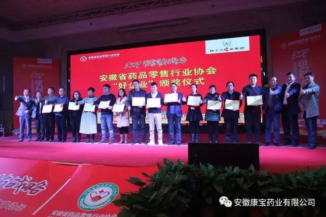 12月26日,由省藥品零售行業(yè)協(xié)會主辦的安徽省藥品零售企業(yè)“好人 好企業(yè)”頒獎典禮在省城合肥隆重舉行。康寶藥業(yè)經(jīng)過逐級推薦、層層考核、公開評審等程序,最終被評為“好企業(yè)”稱號,康寶藥業(yè)員工青春嬌、李洪被評為“好人”稱號