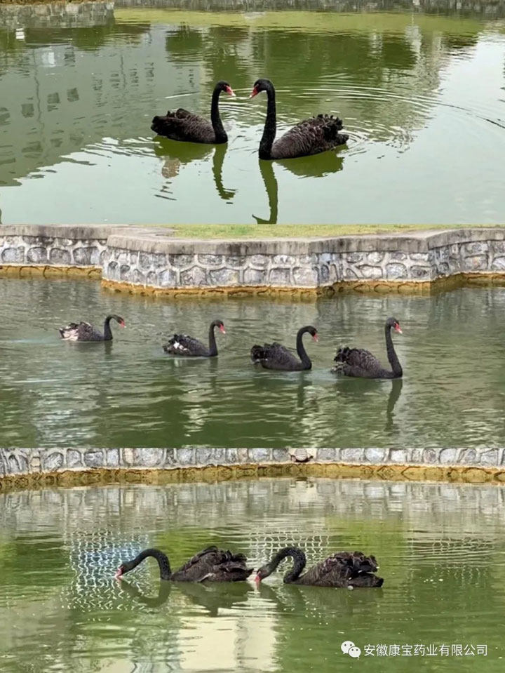 時逢六周年,江董事長為康寶藥業送來兩對黑天鵝